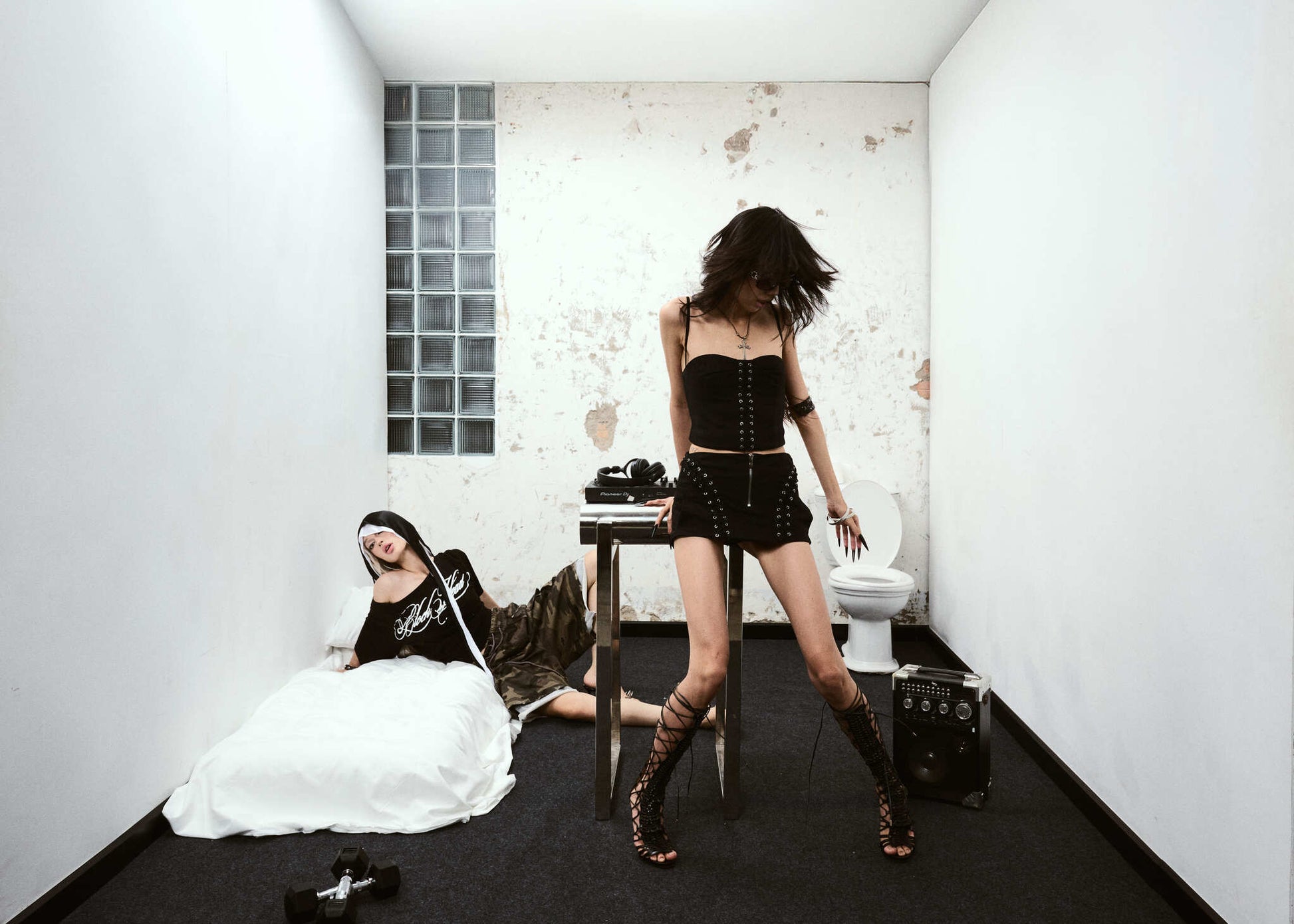 -The skirt is designed with metal eyelet lace-up detailing that stars from the back waistband and extends down to the front hemline